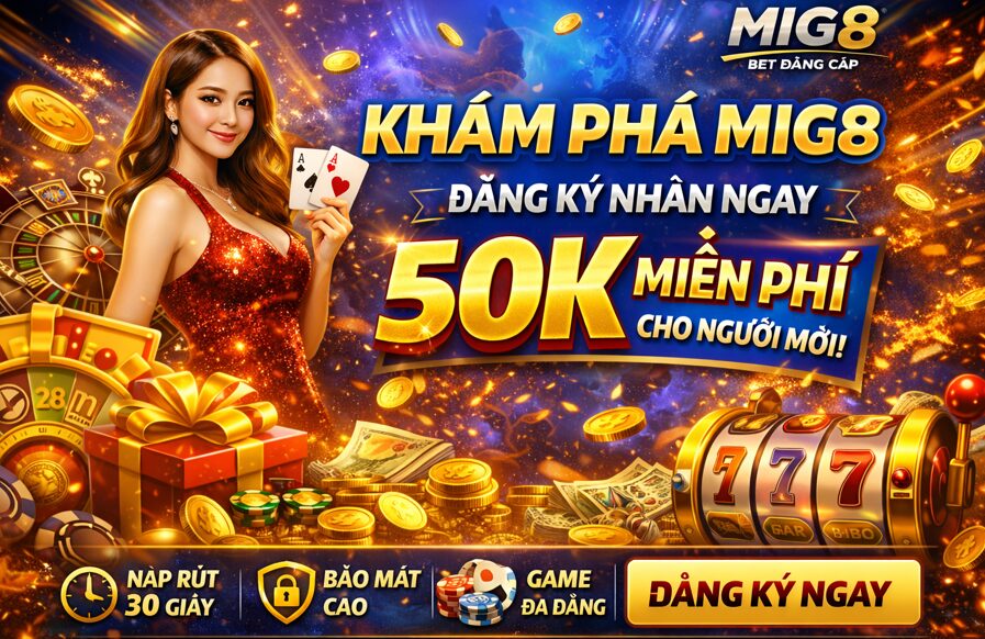 Ưu đãi đăng ký nhận ngay 50K miễn phí là cơ hội tuyệt vời để người chơi mới khám phá MIG8 mà không cần bỏ vốn. Với hệ thống uy tín, giao dịch nhanh, kho game khổng lồ và nhiều khuyến mãi hấp dẫn, MIG8 xứng đáng là một trong những nhà cái đáng trải nghiệm nhất năm nay.
