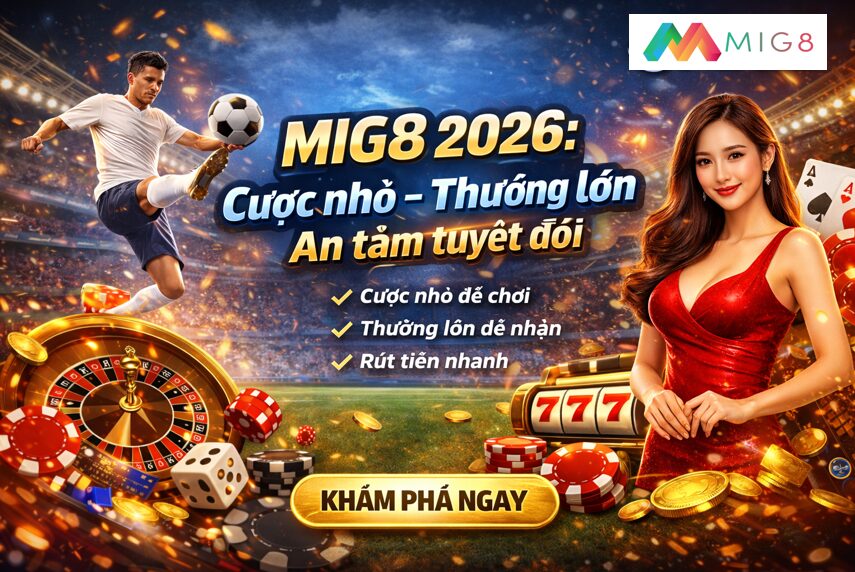 MIG8 2026 mang đến trải nghiệm cược nhỏ – thưởng lớn với hệ thống an toàn, rút tiền nhanh, khuyến mãi hấp dẫn và dịch vụ hỗ trợ chuyên nghiệp.