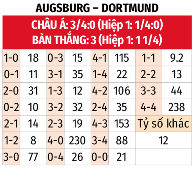 - Tuy nhiên, lưu ý rằng Augsburg từng có chiến thắng trước Dortmund trong lần gần đây và có thể sẽ chơi với tâm lý “đòi nợ”.